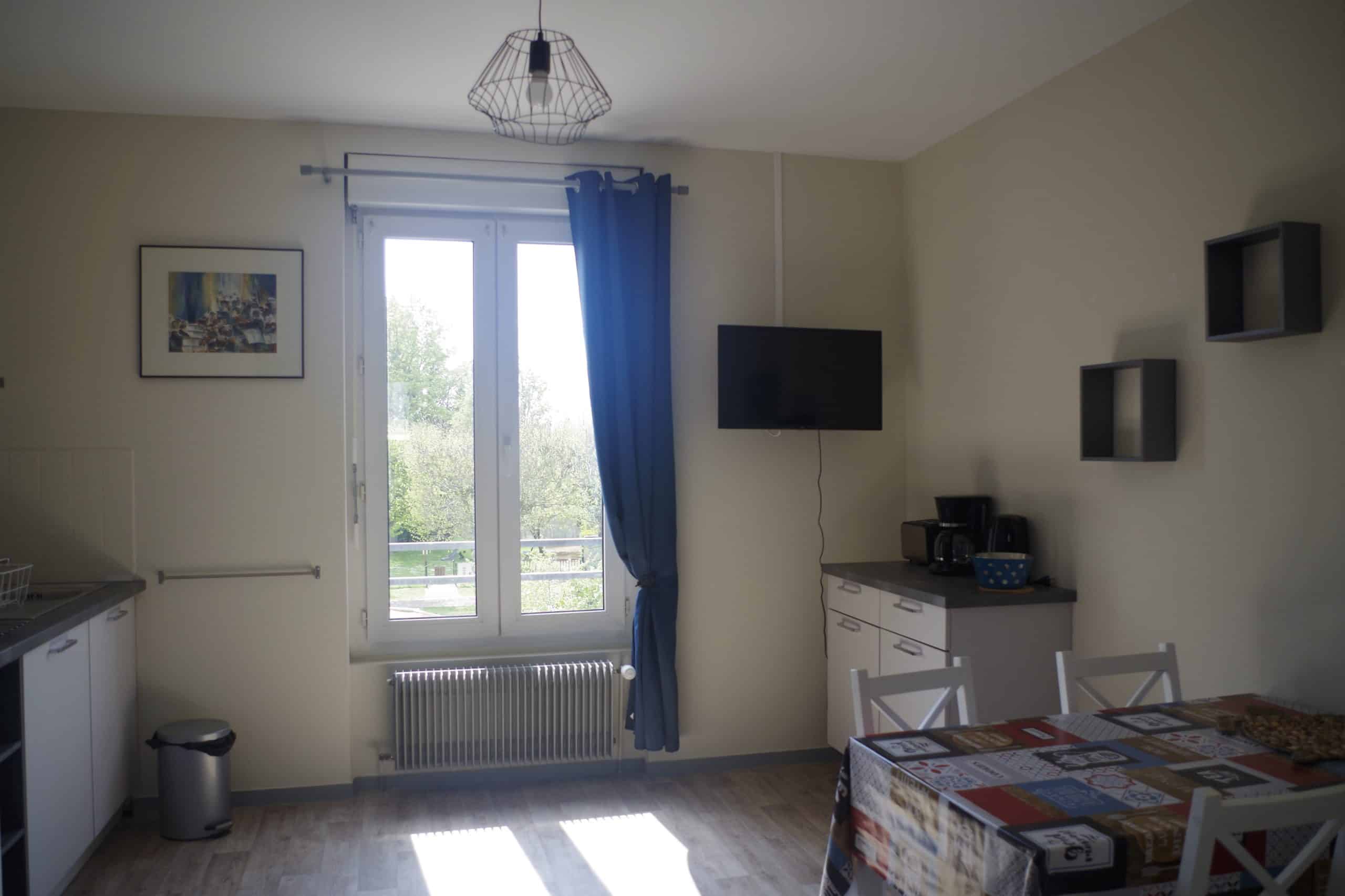 L’appartement meublé, idéal pour une famille avec enfants est situé au premier étage sans ascenseur d’une ancienne école, en bordure d’une place, avec à proximité un espace de jeux public. Au rez de chaussée une cour fermée commune aux 2 logements propose 1 table de pique-nique en extérieur.